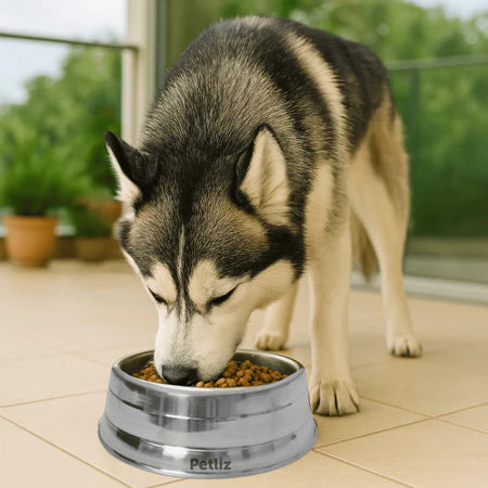 Comedouro Pesado Polido de Alumínio Para Cães Pote De Ração Resistente